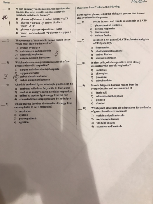 Solved Which Summary Word Equation Best Describes The Chegg Com